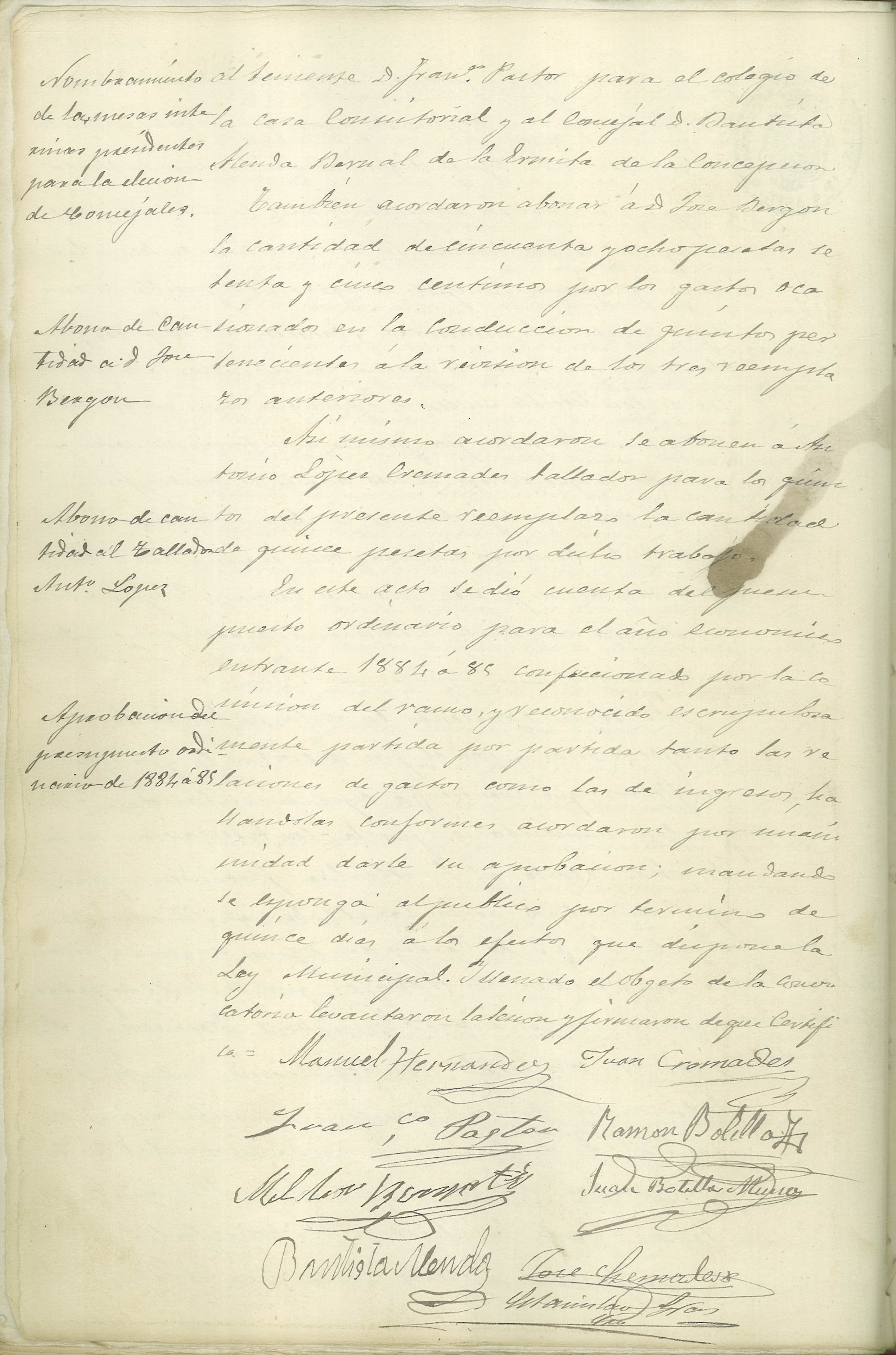 Actas de Pleno, 1884-1885
