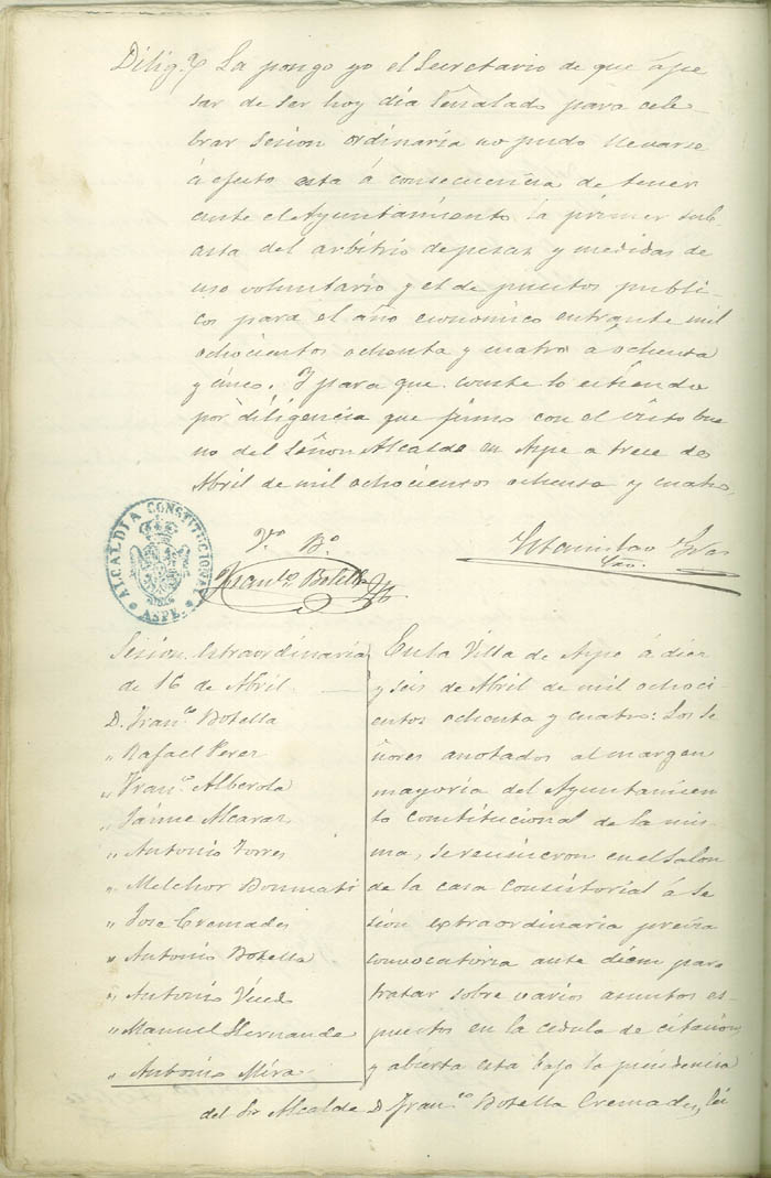 Actas de Pleno, 1884-1885