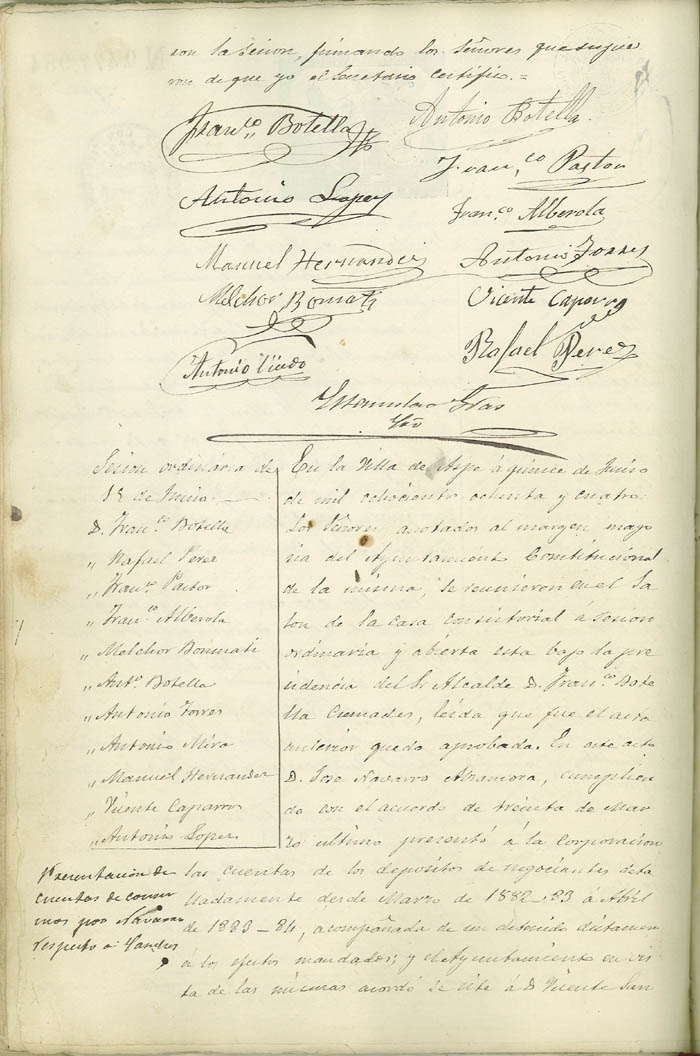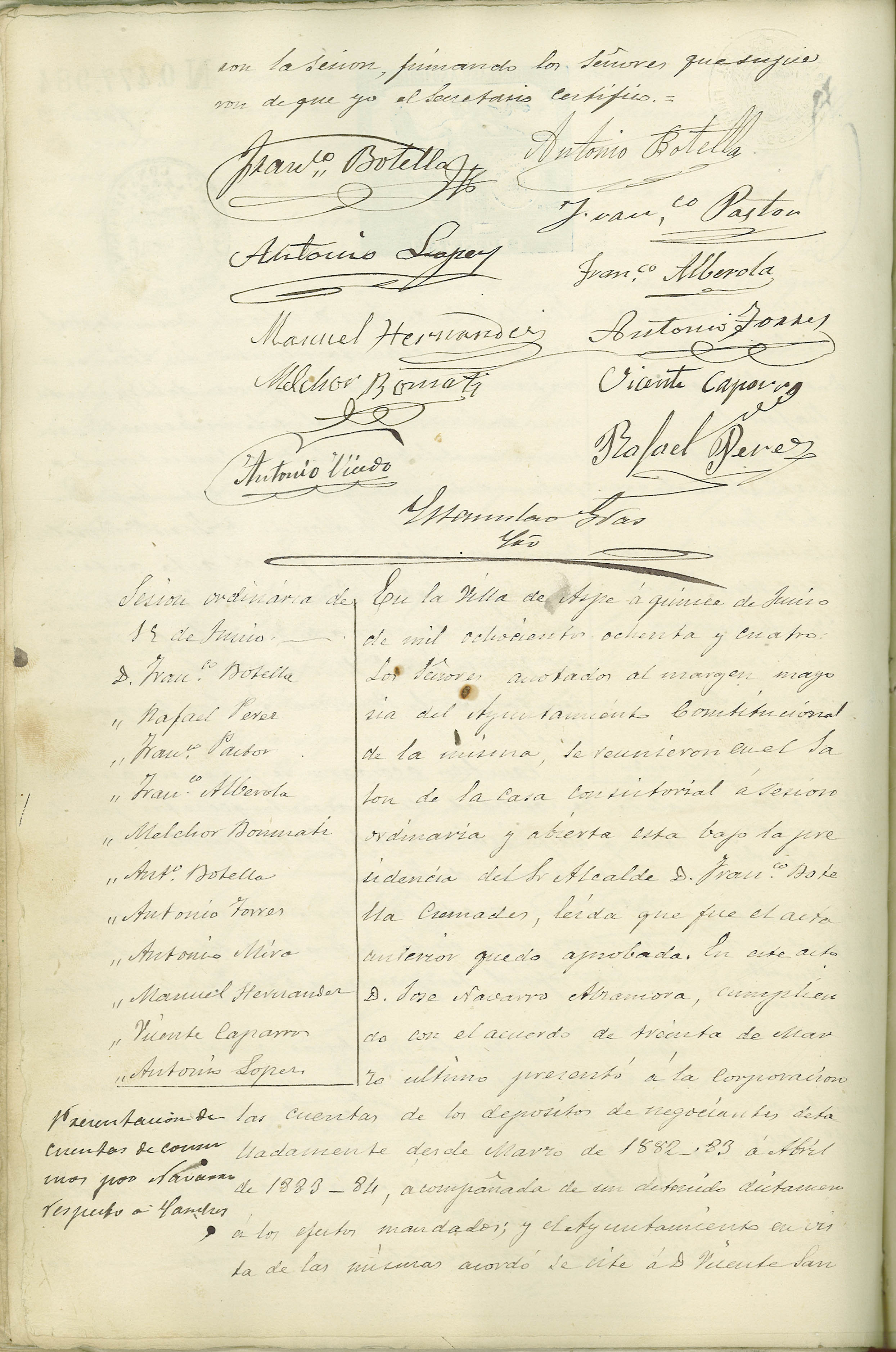 Actas de Pleno, 1884-1885