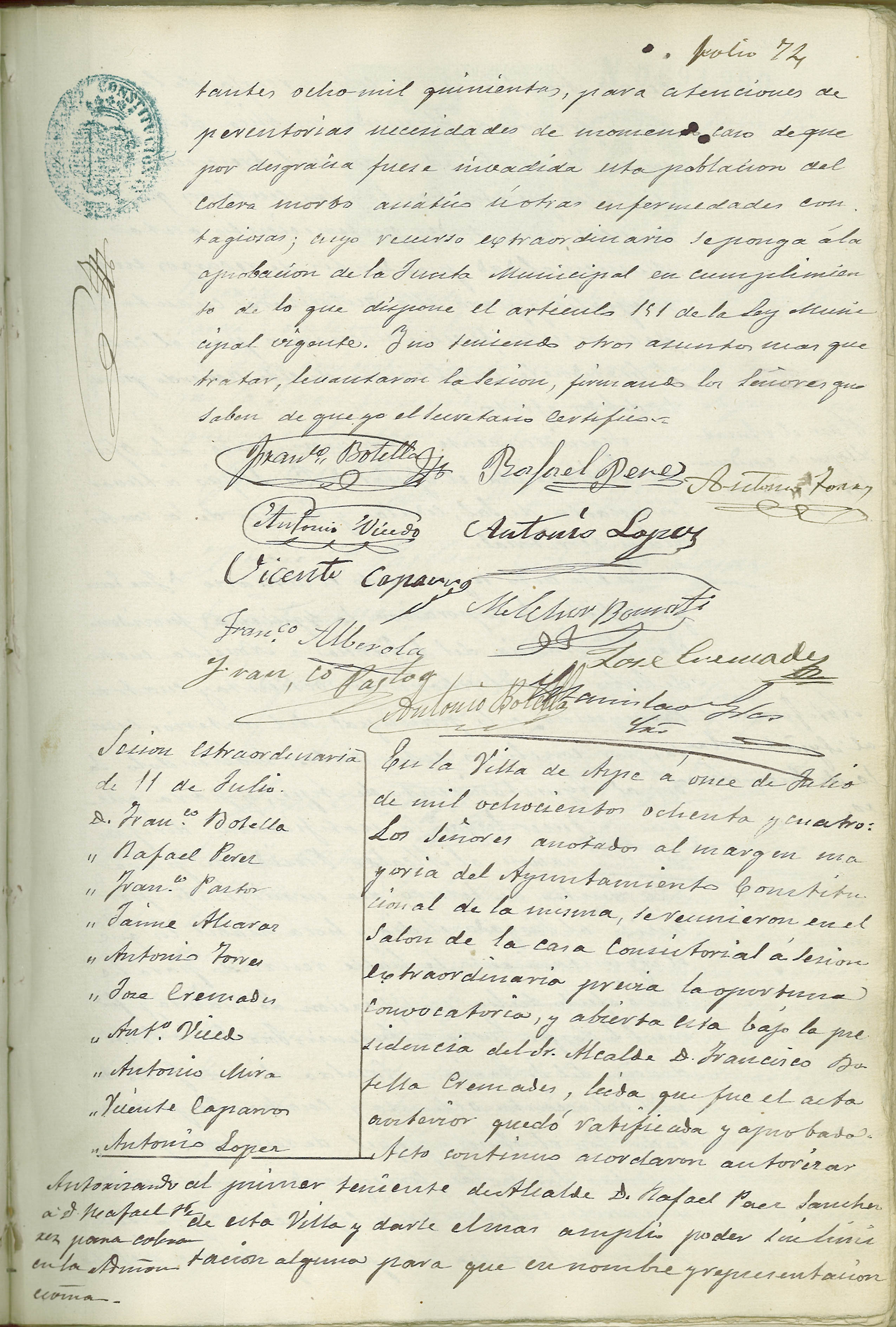 Actas de Pleno, 1884-1885