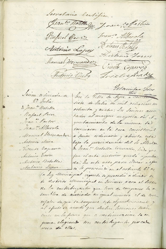 Actas de Pleno, 1884-1885