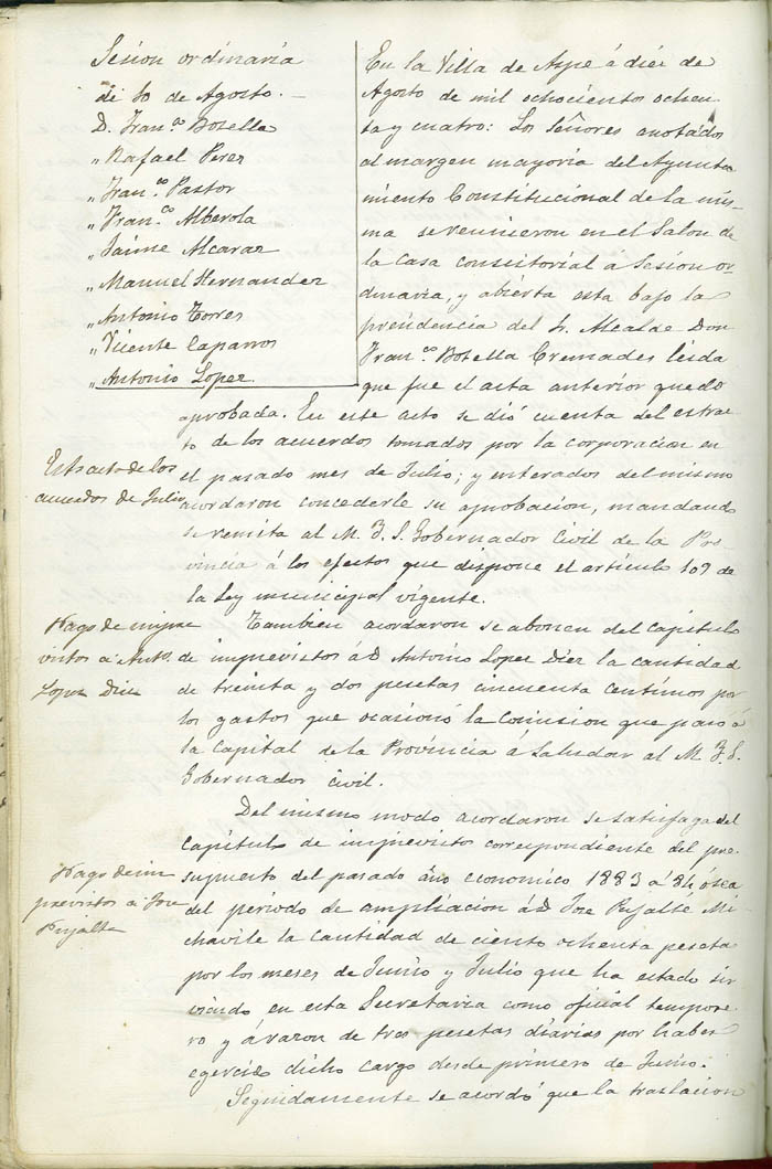 Actas de Pleno, 1884-1885