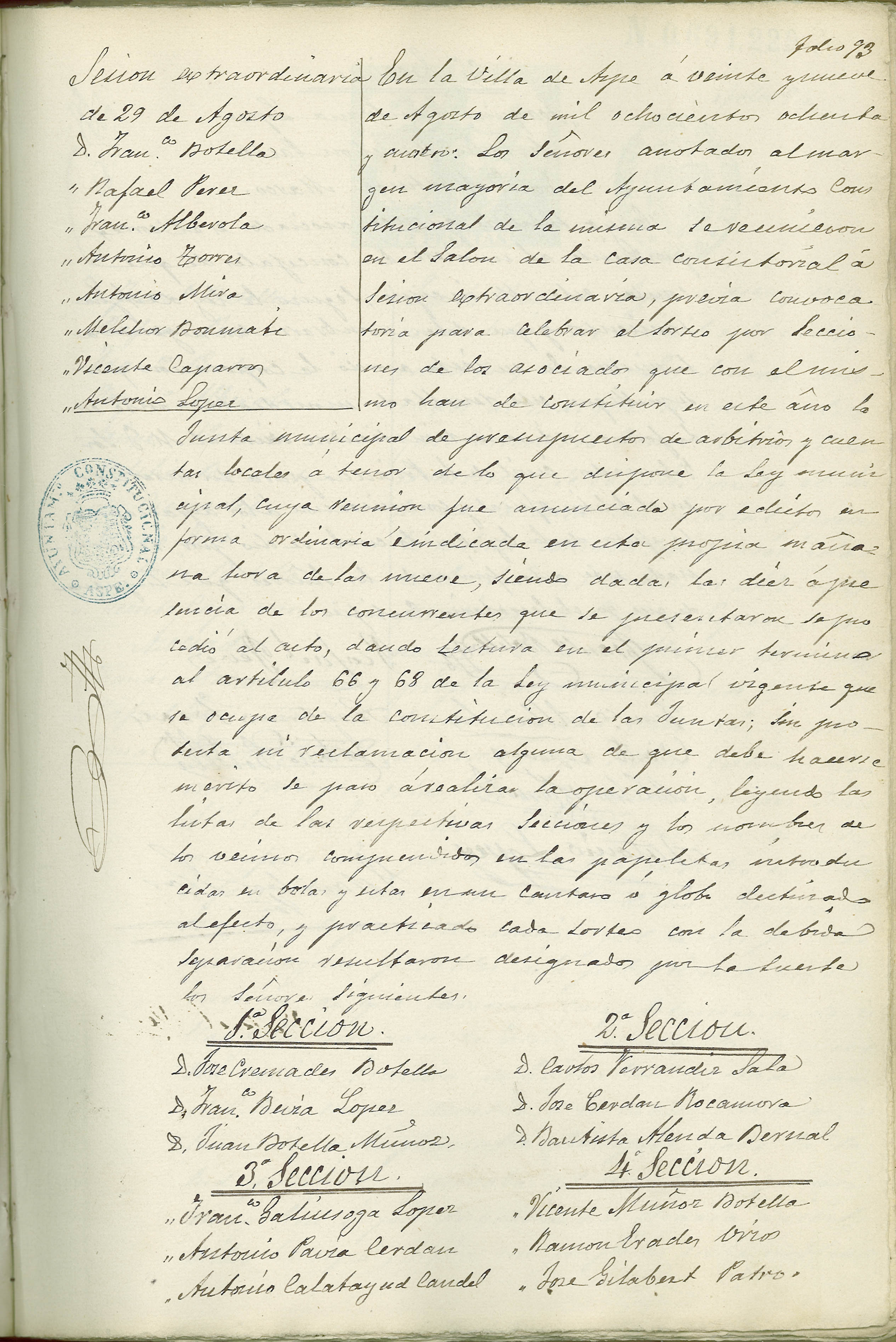 Actas de Pleno, 1884-1885