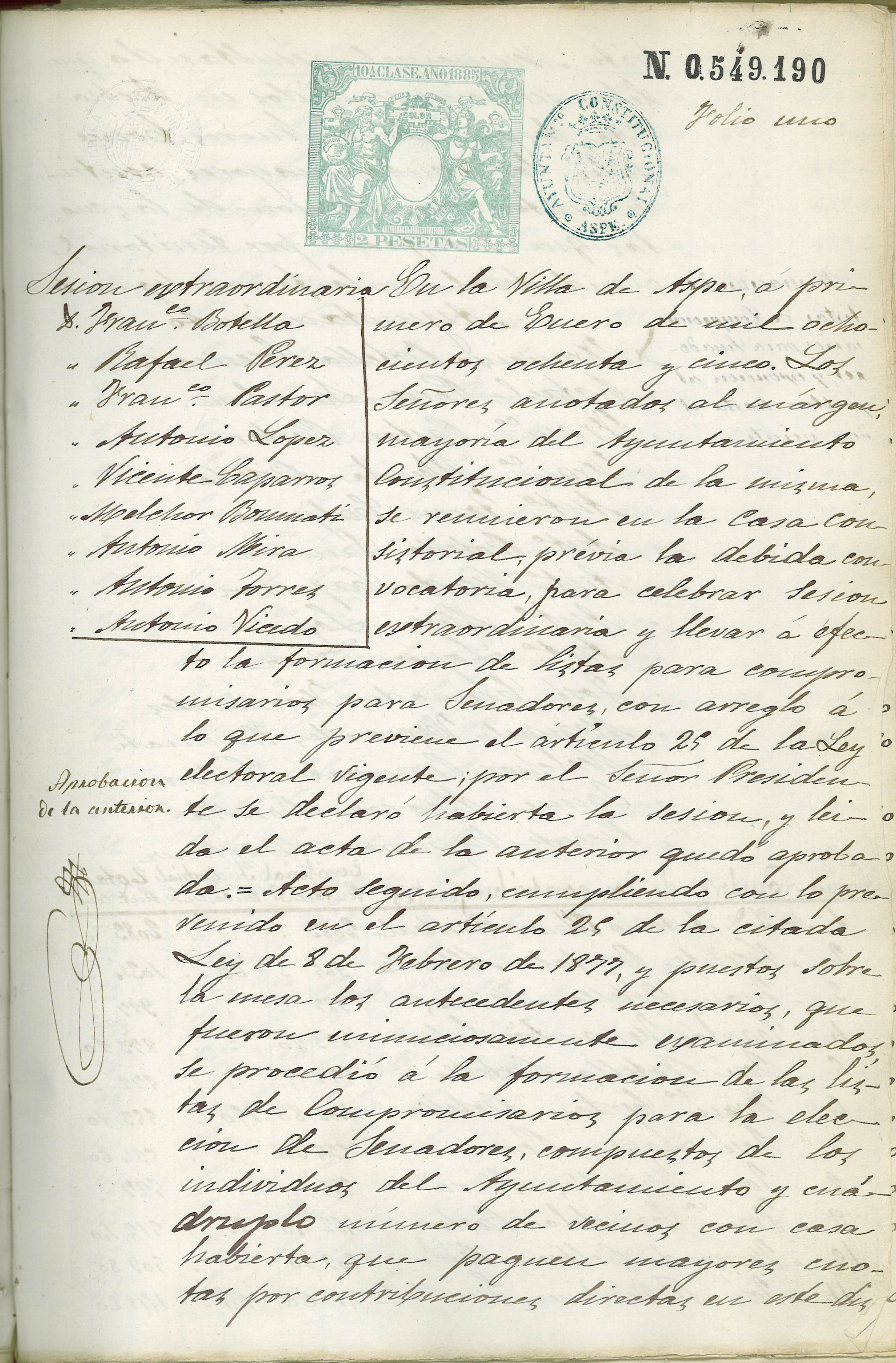 Actas de Pleno, 1884-1885