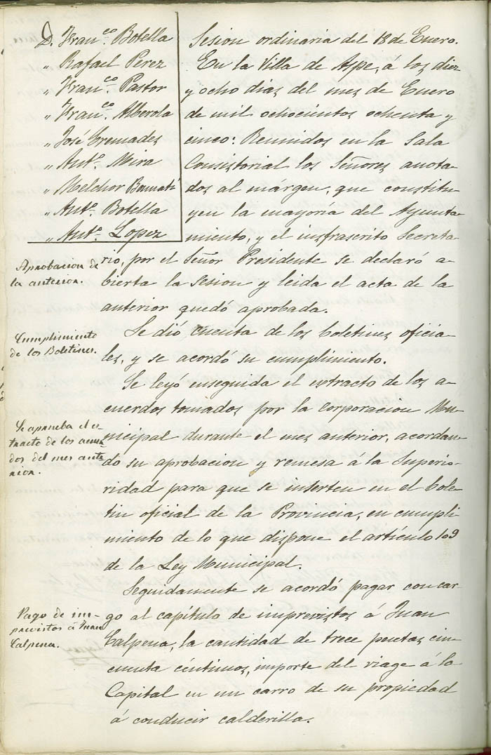 Actas de Pleno, 1884-1885