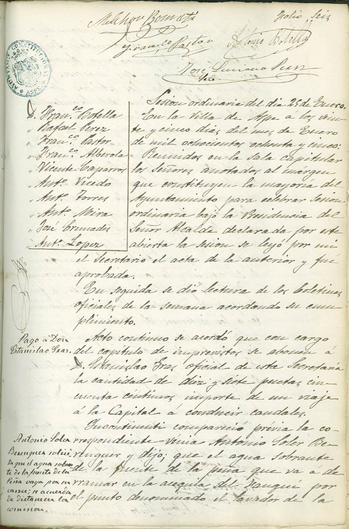 Actas de Pleno, 1884-1885