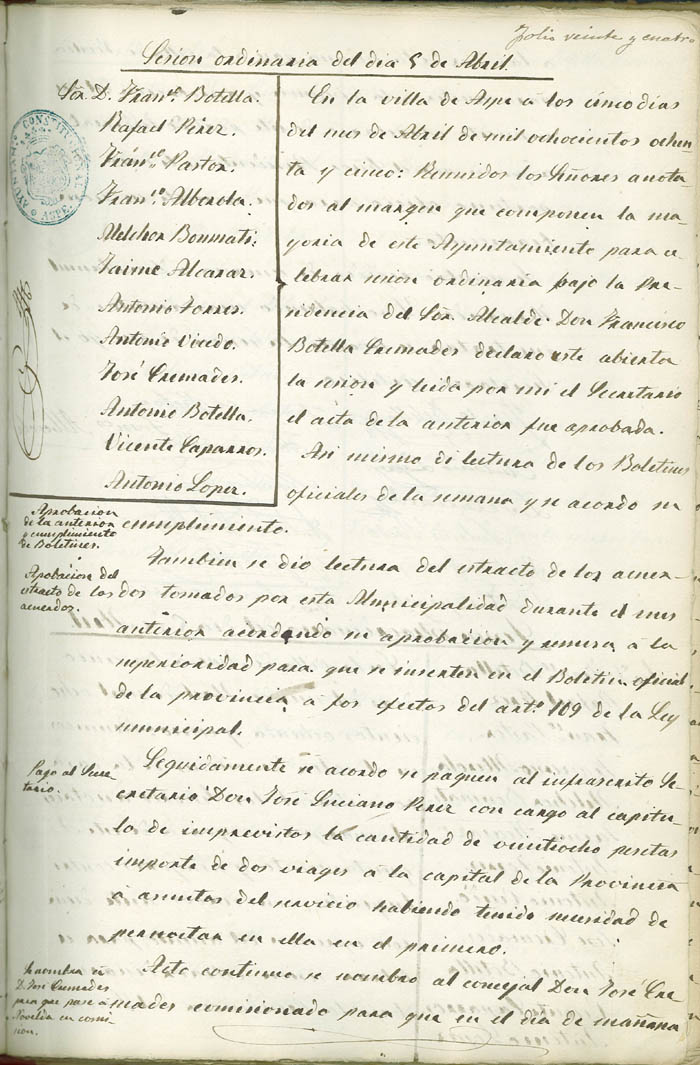 Actas de Pleno, 1884-1885