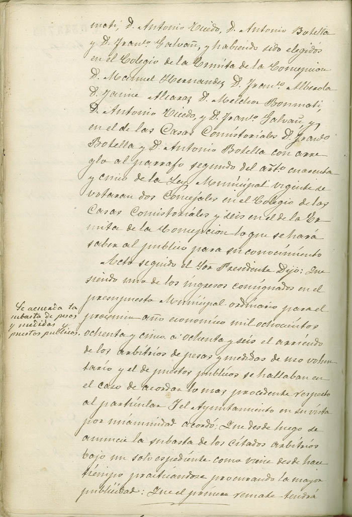 Actas de Pleno, 1884-1885
