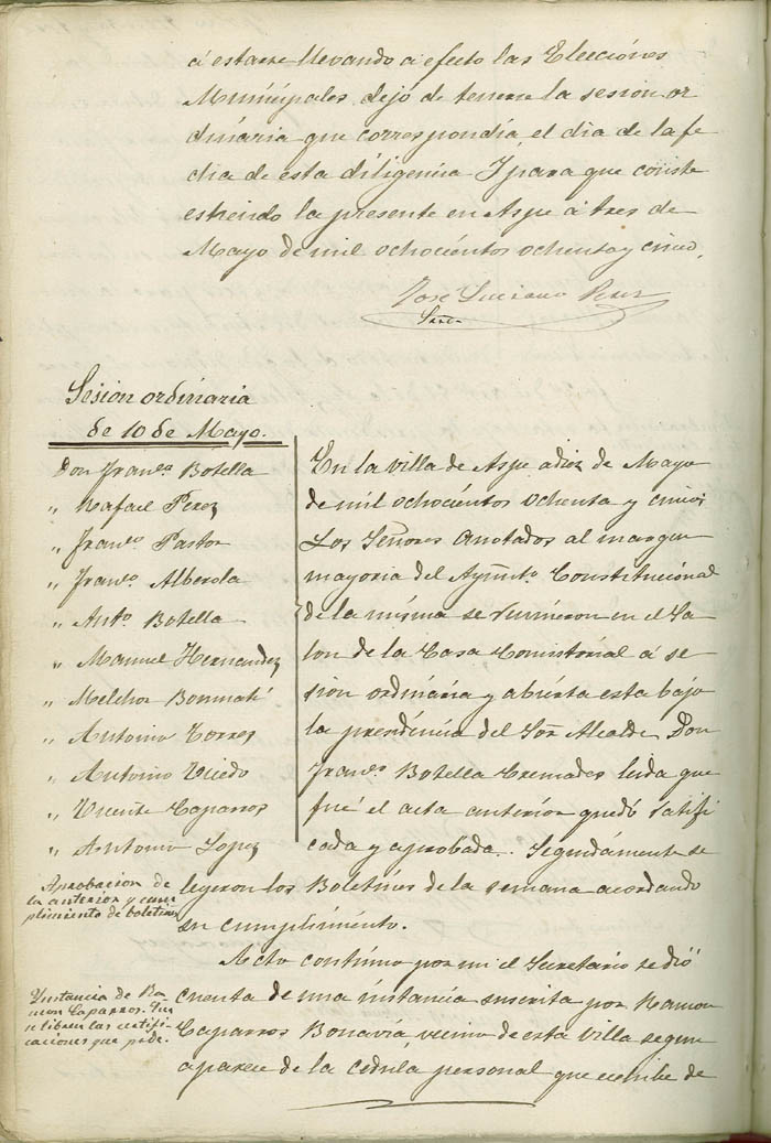 Actas de Pleno, 1884-1885