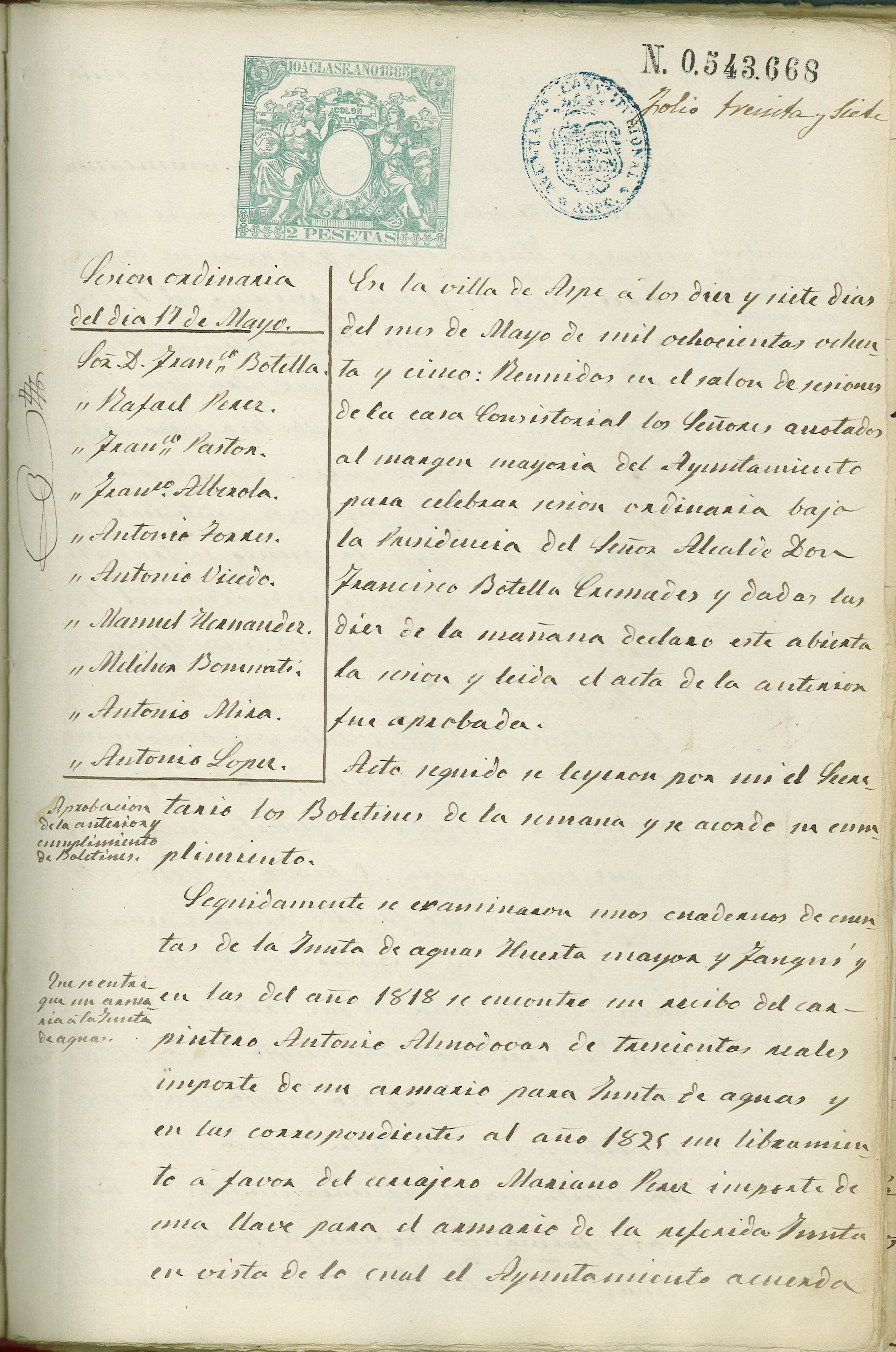 Actas de Pleno, 1884-1885