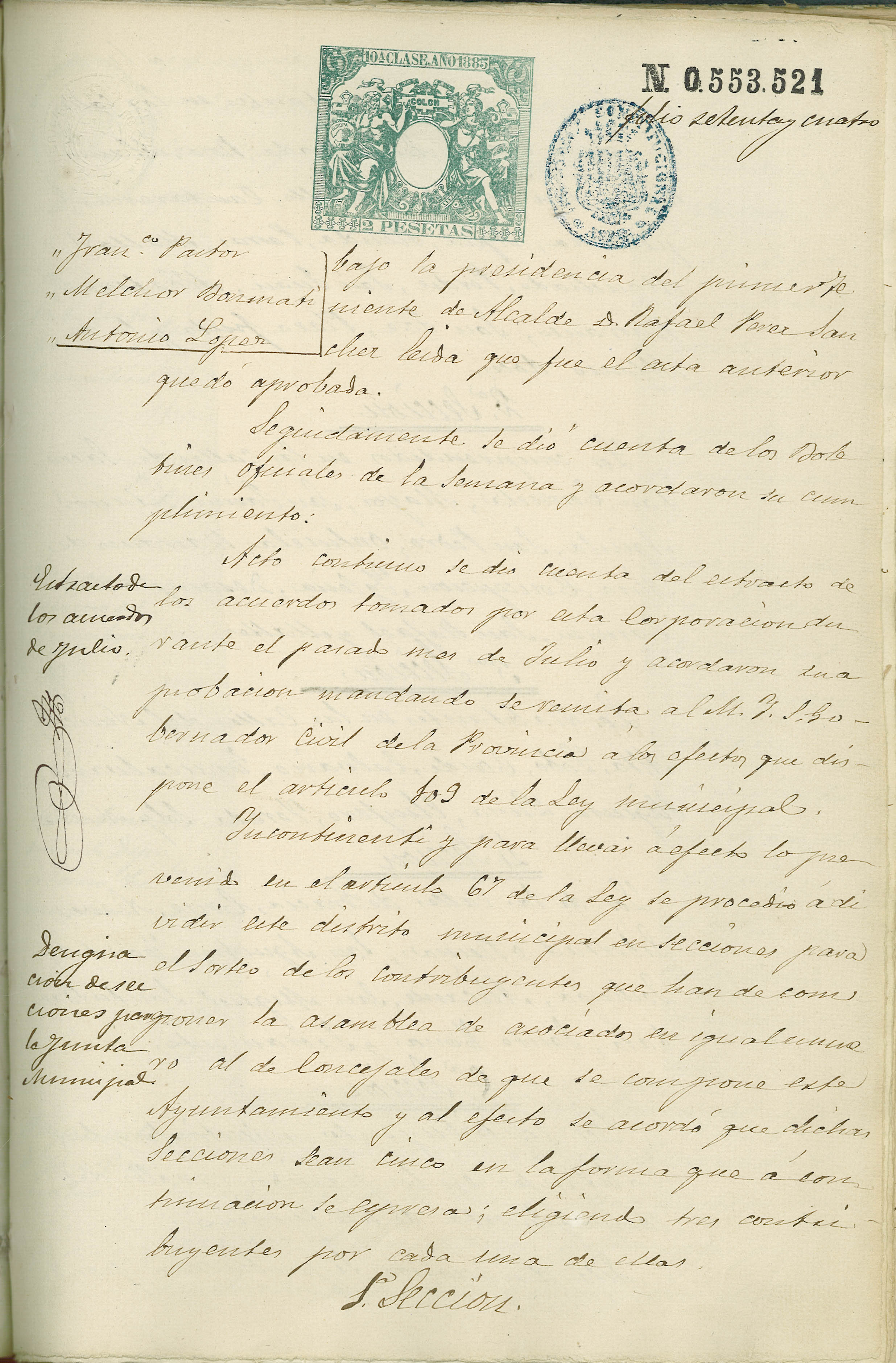 Actas de Pleno, 1884-1885