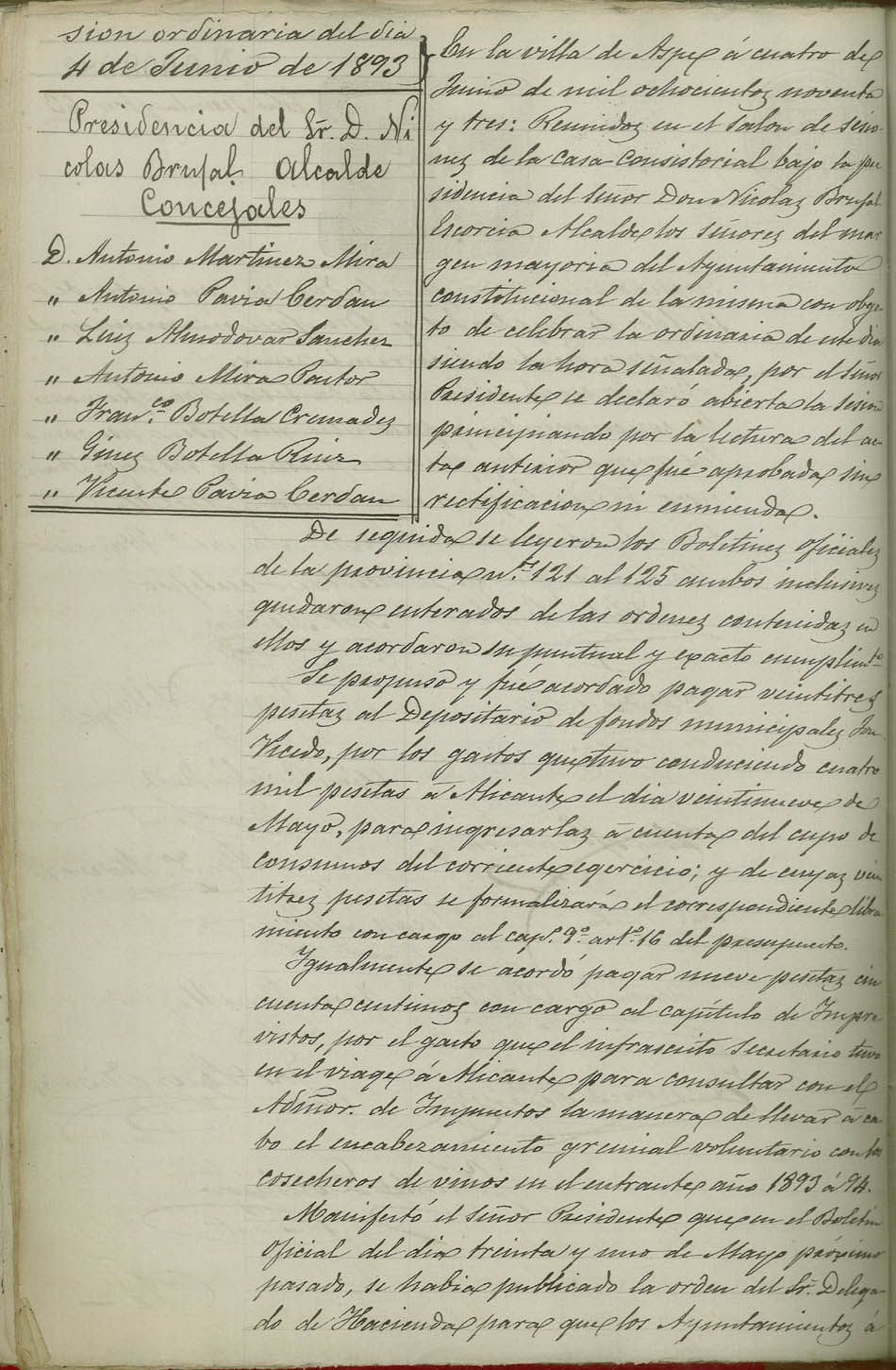Actas de Pleno, 1893
