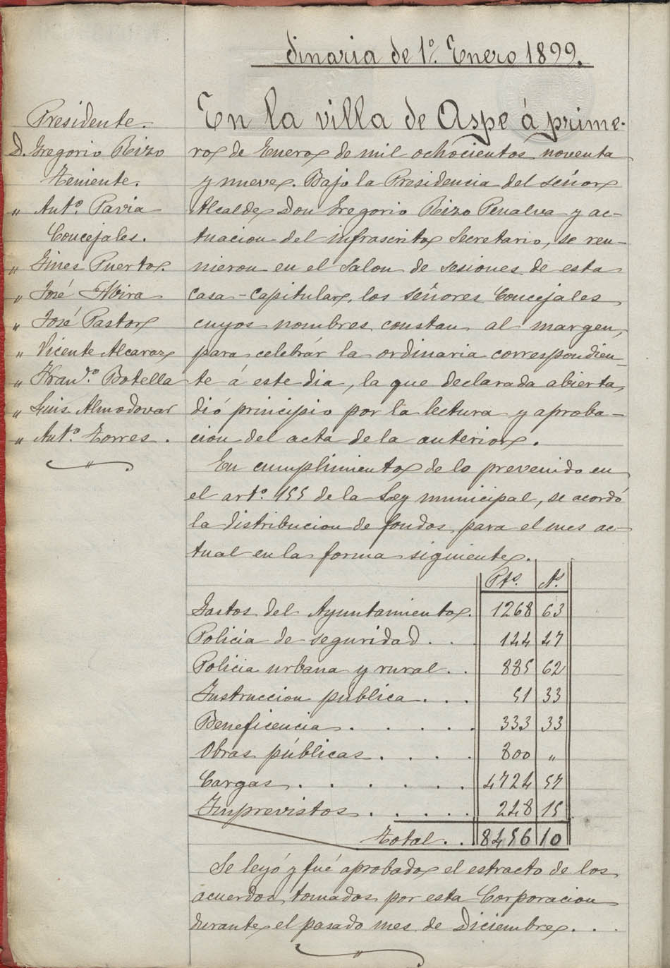 Actas de Pleno, 1899