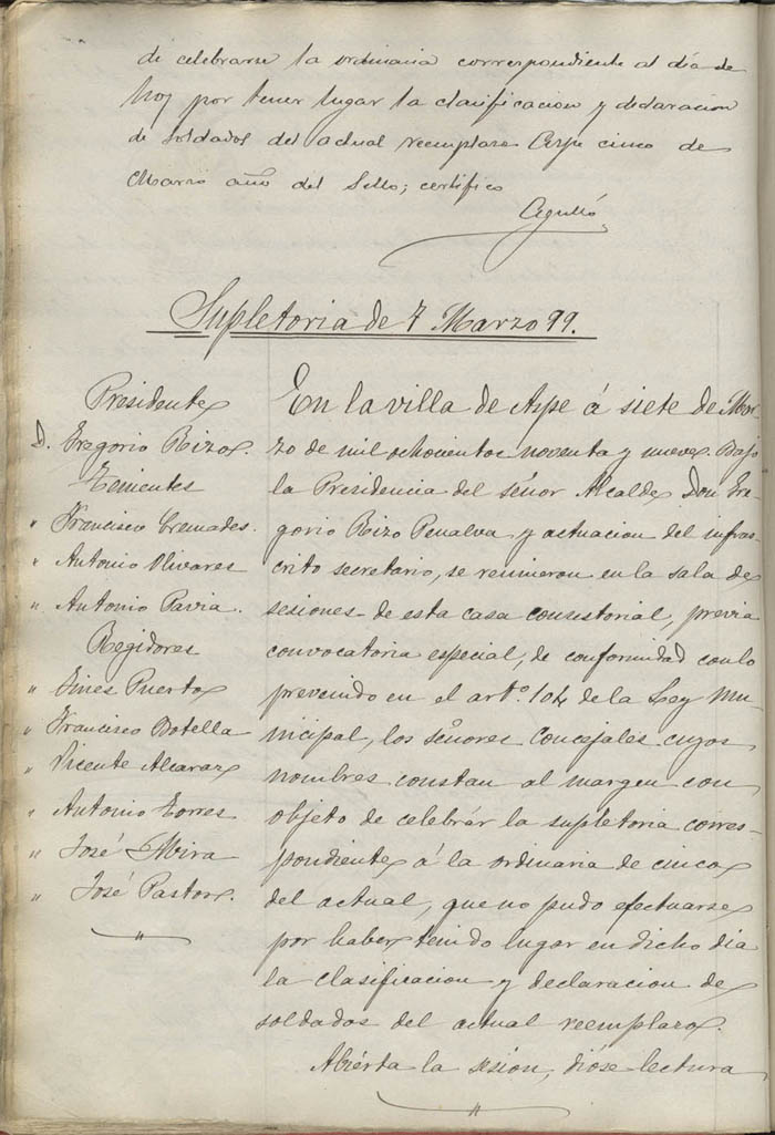 Actas de Pleno, 1899