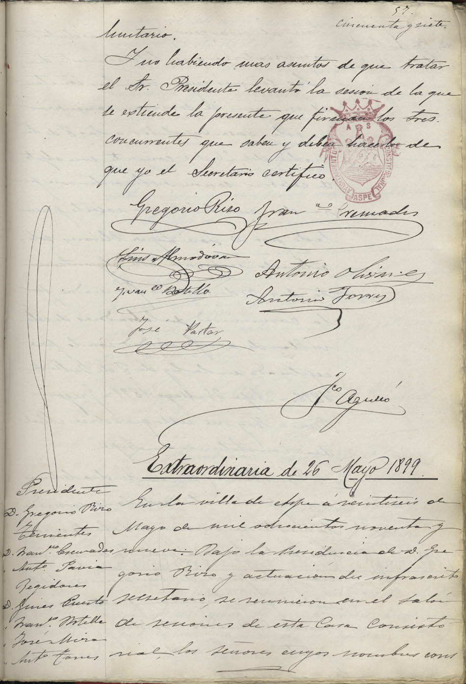 Actas de Pleno, 1899