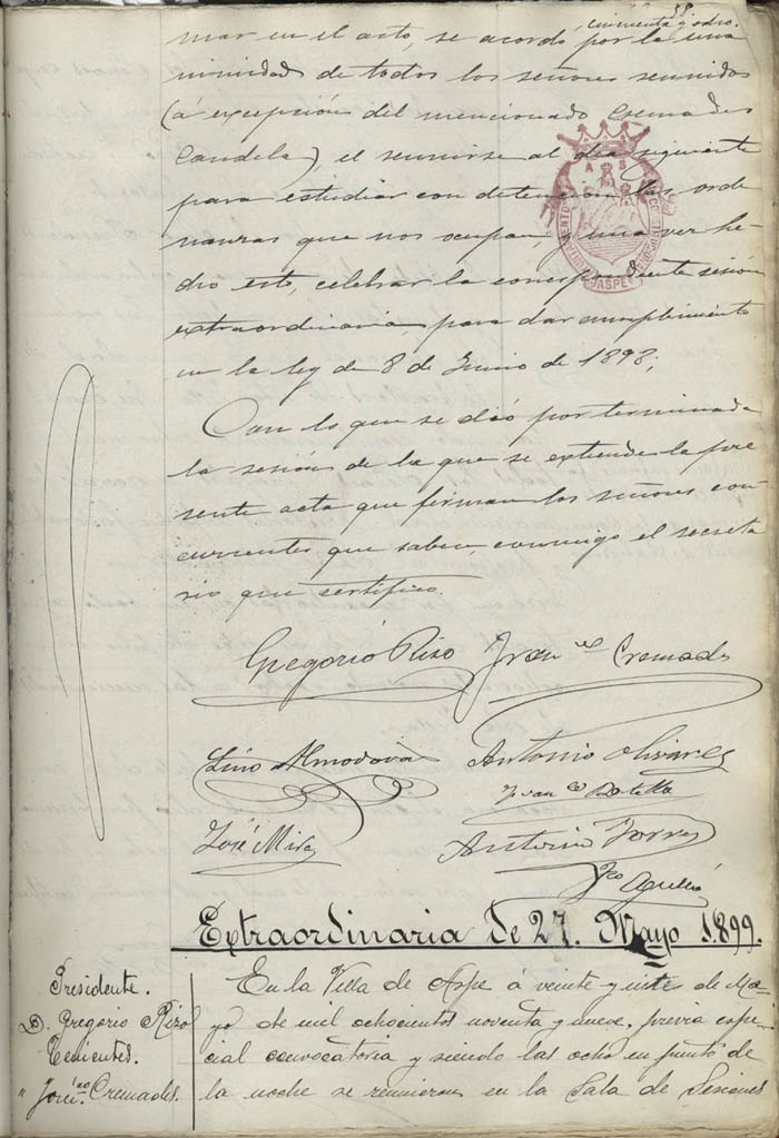 Actas de Pleno, 1899