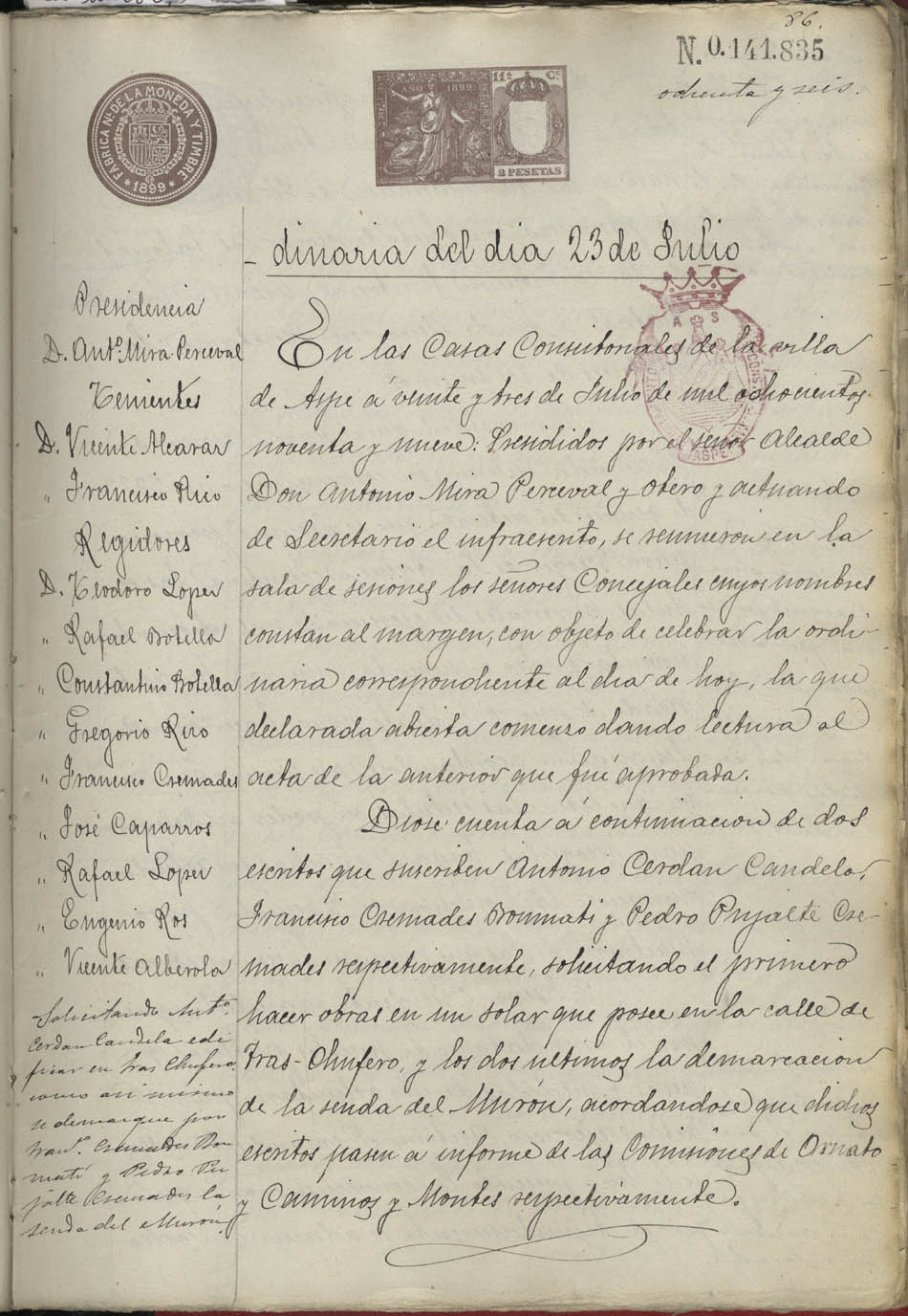 Actas de Pleno, 1899