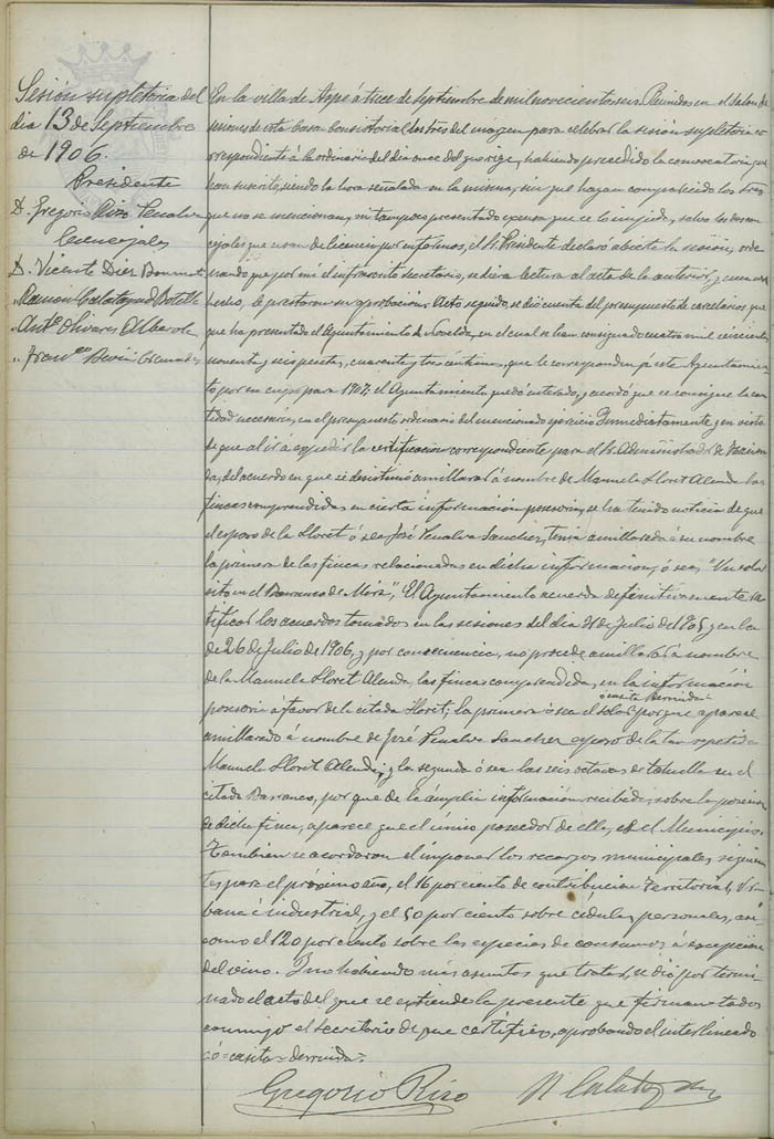Actas de Pleno, 1906-1907