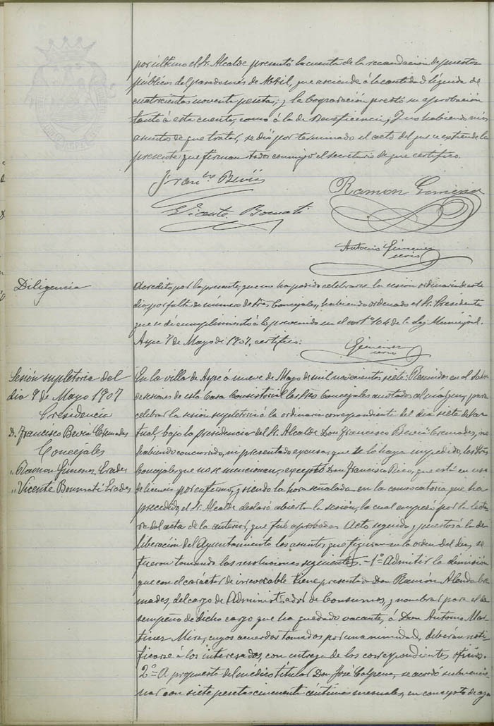 Actas de Pleno, 1906-1907