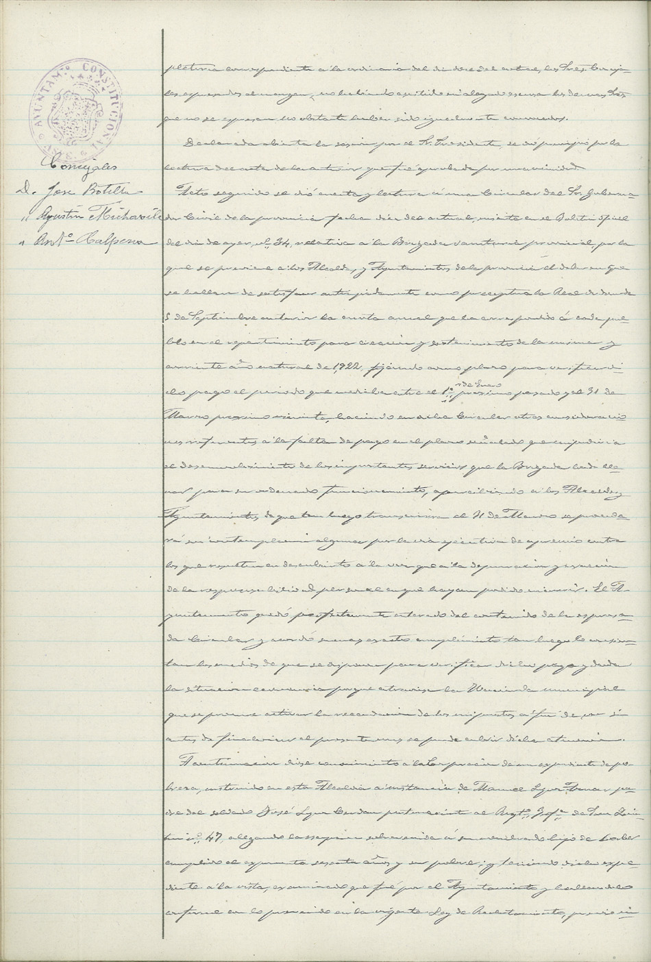 Actas de Pleno, 1921-1922