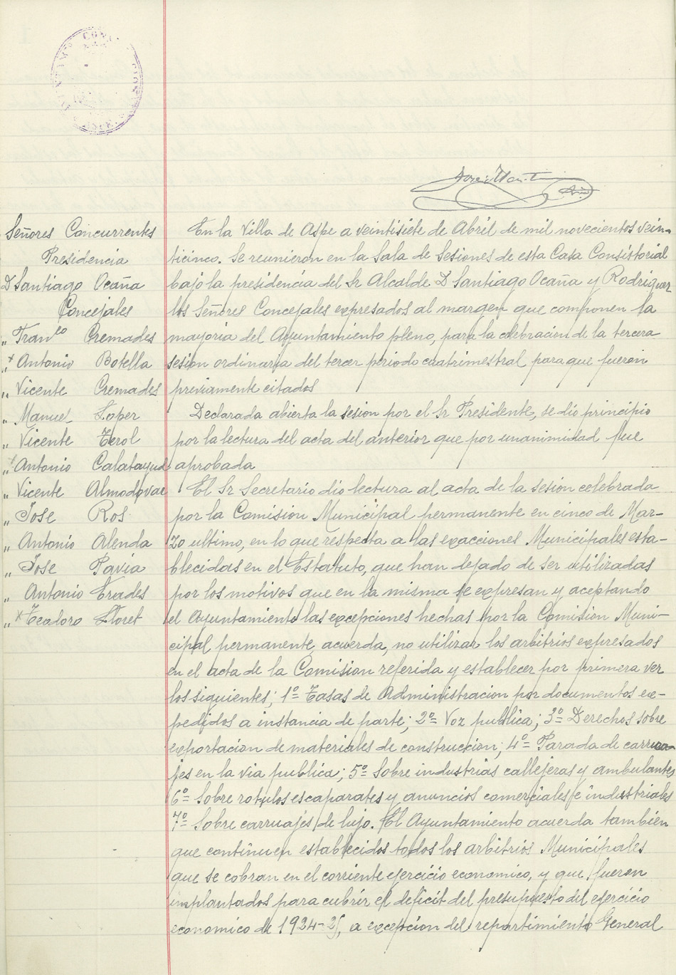 Actas de Pleno, 1925-1927