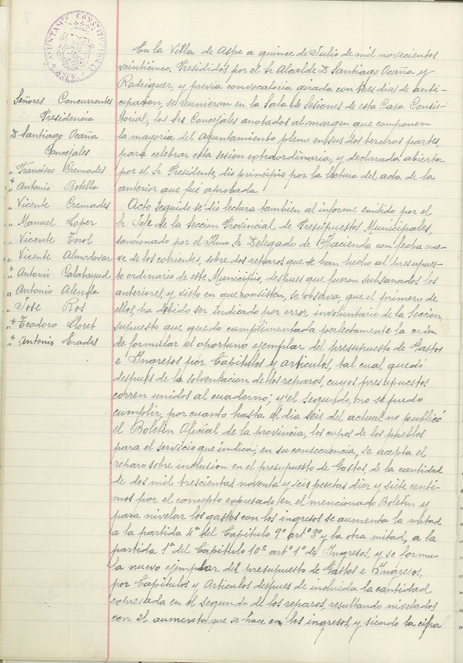 Actas de Pleno, 1925-1927