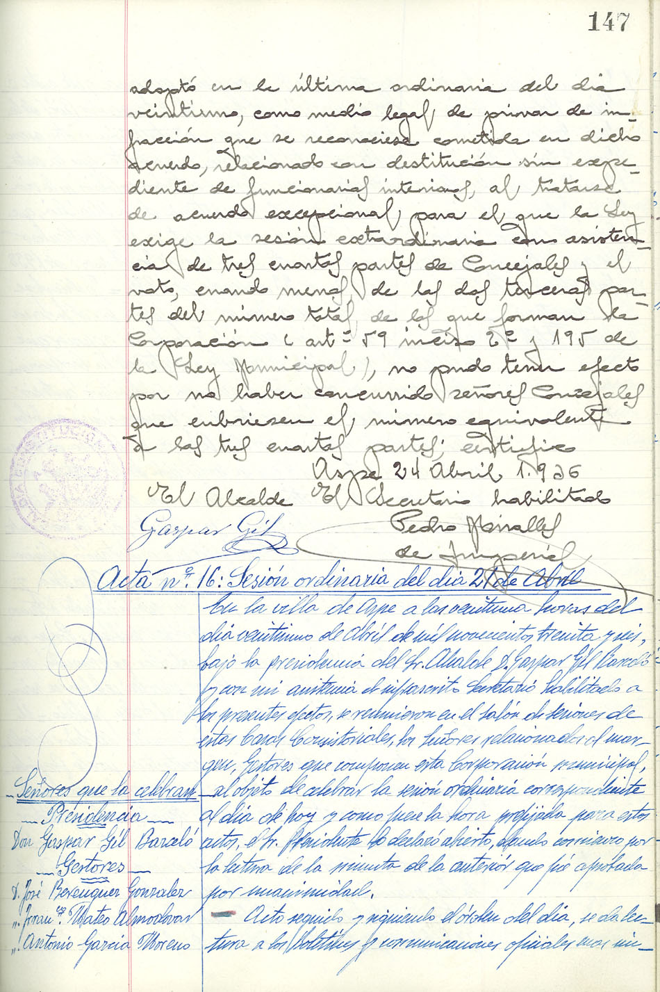Actas de Pleno, 1935-1936
