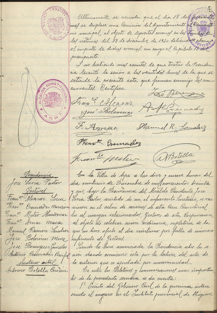 Actas de Pleno, 1936-1937