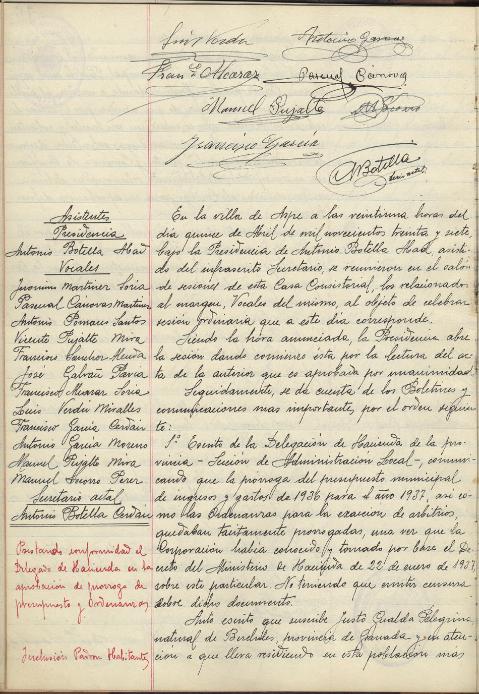 Actas de Pleno, 1936-1937