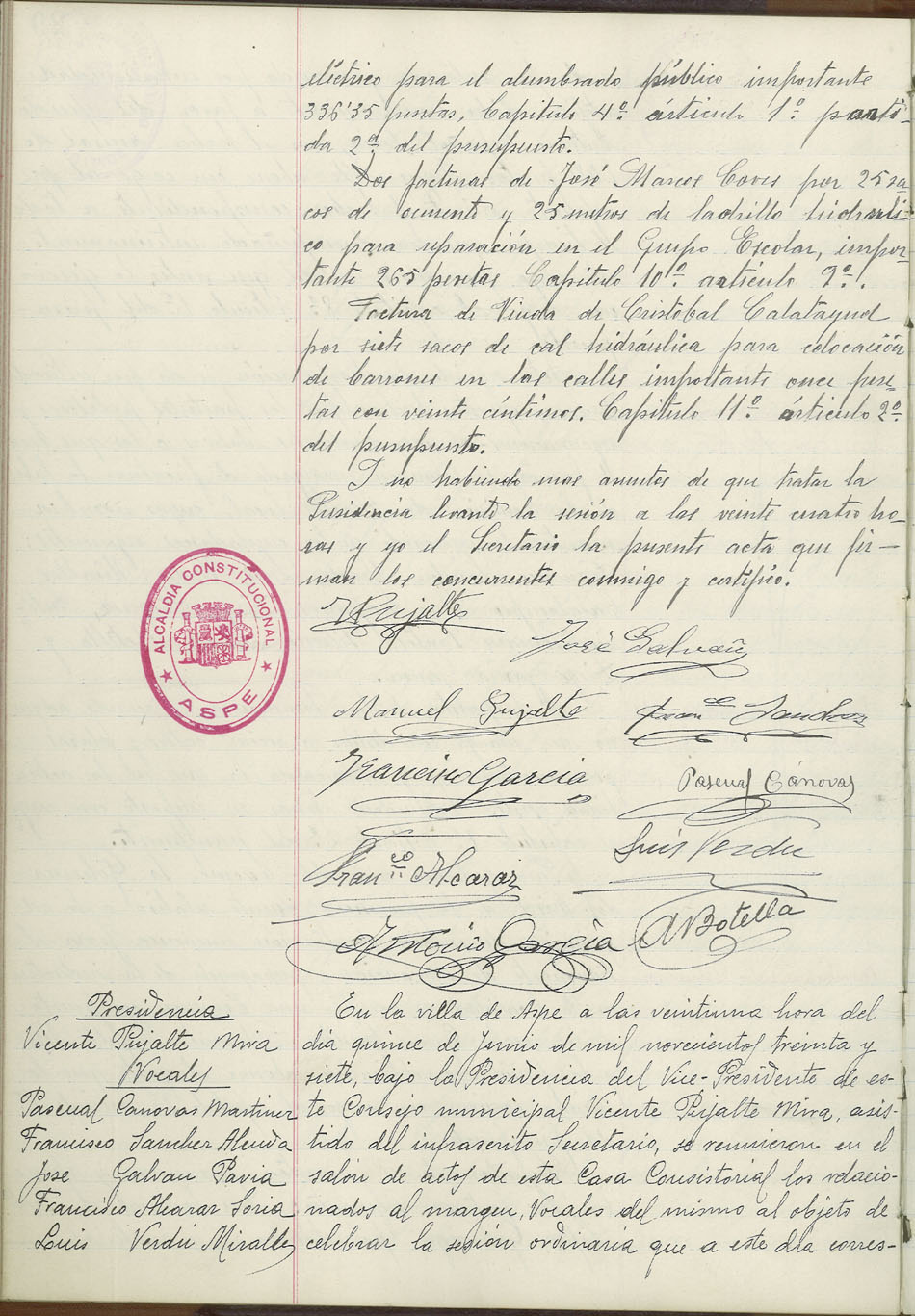 Actas de Pleno, 1936-1937