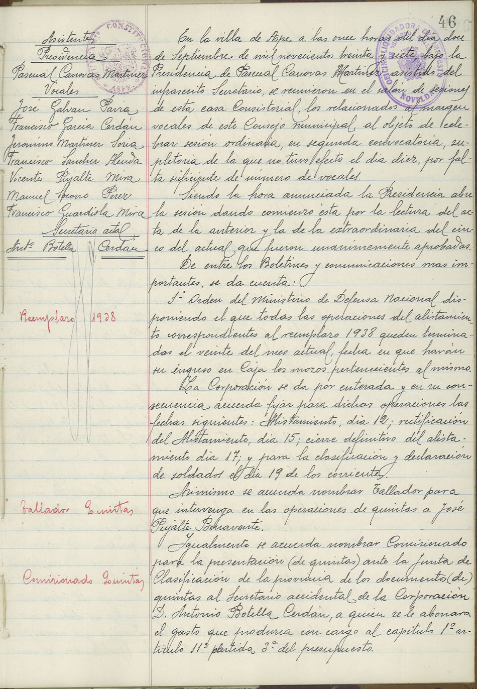 Actas de Pleno, 1936-1937