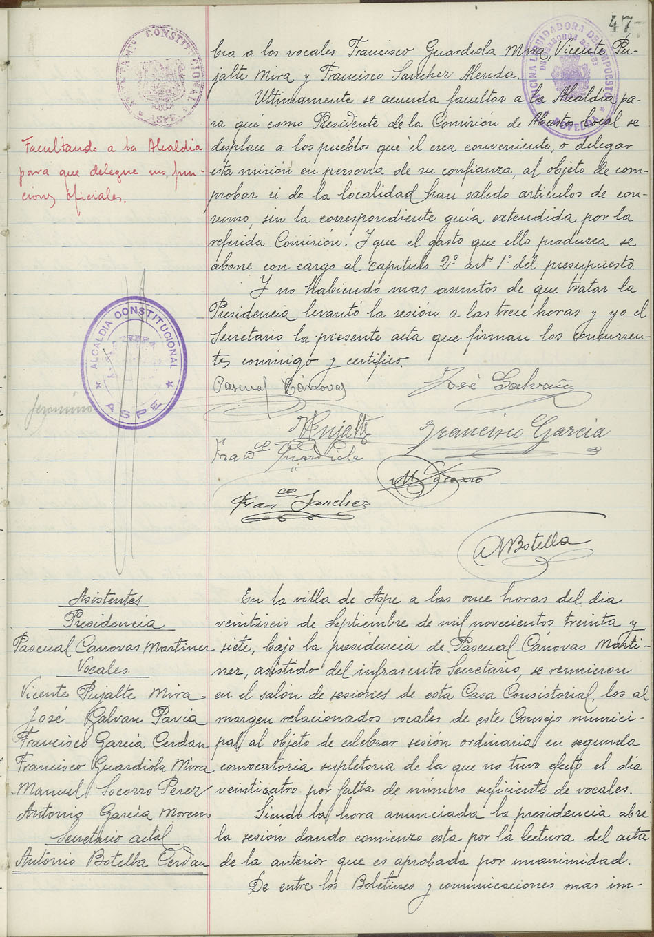 Actas de Pleno, 1936-1937