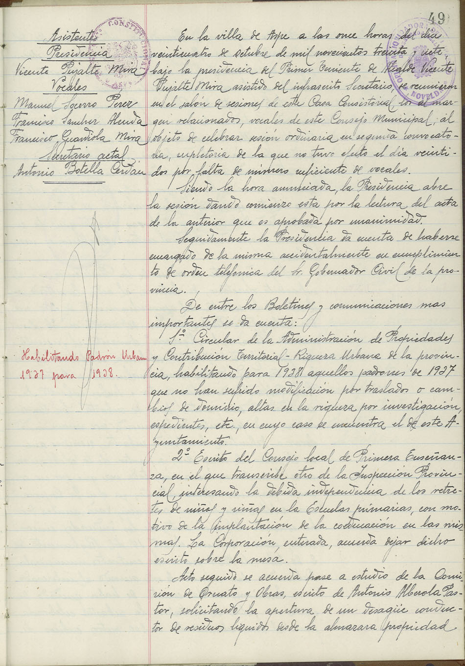 Actas de Pleno, 1936-1937