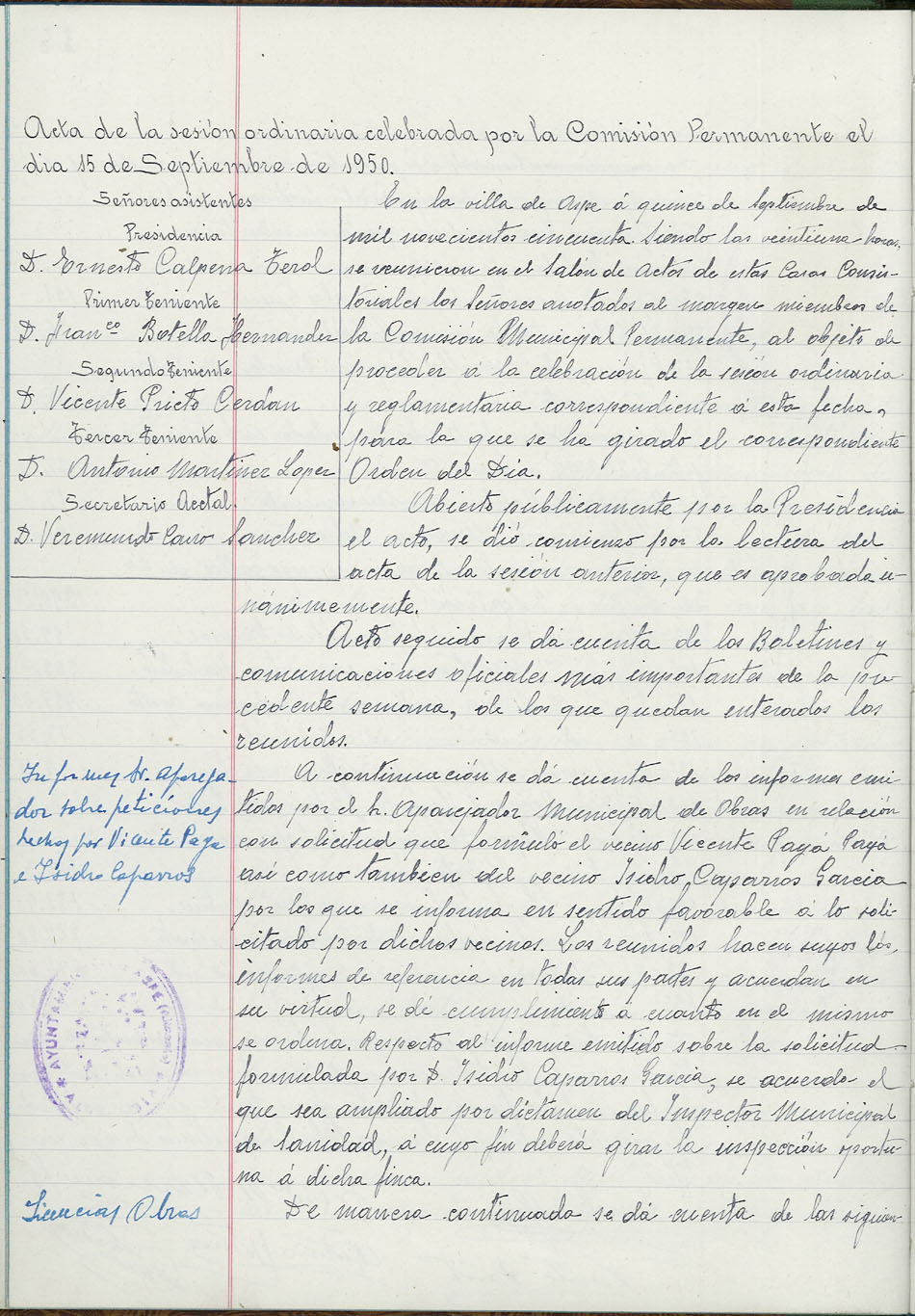 Actas de la Comisión Permanente, 1950-1952