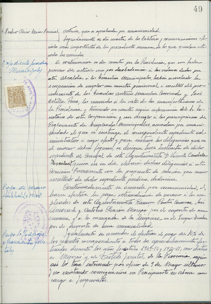 Actas de la Comisión Permanente, 1950-1952