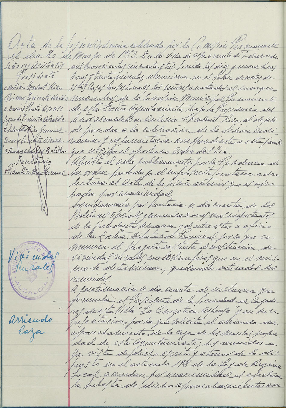 Actas de la Comisión Permanente, 1952-1954