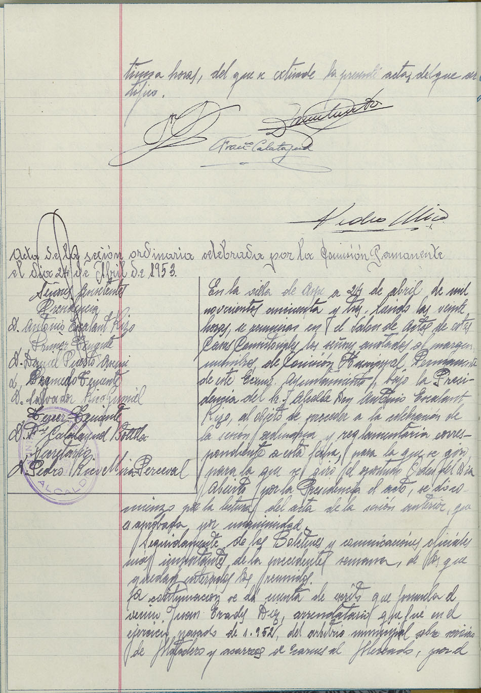Actas de la Comisión Permanente, 1952-1954