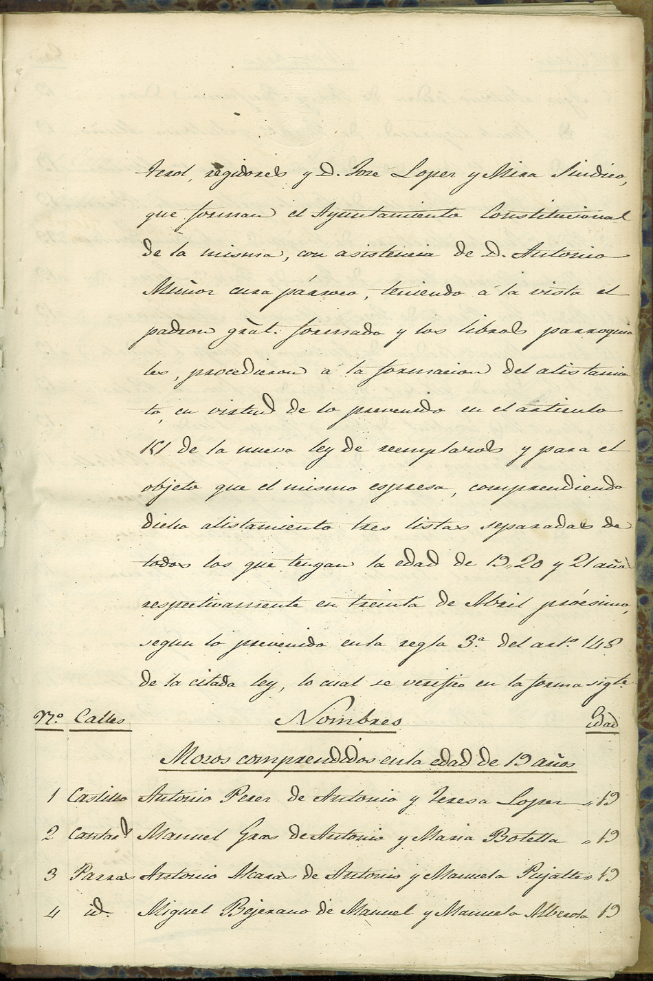Actas de Alistamiento, 1852.
