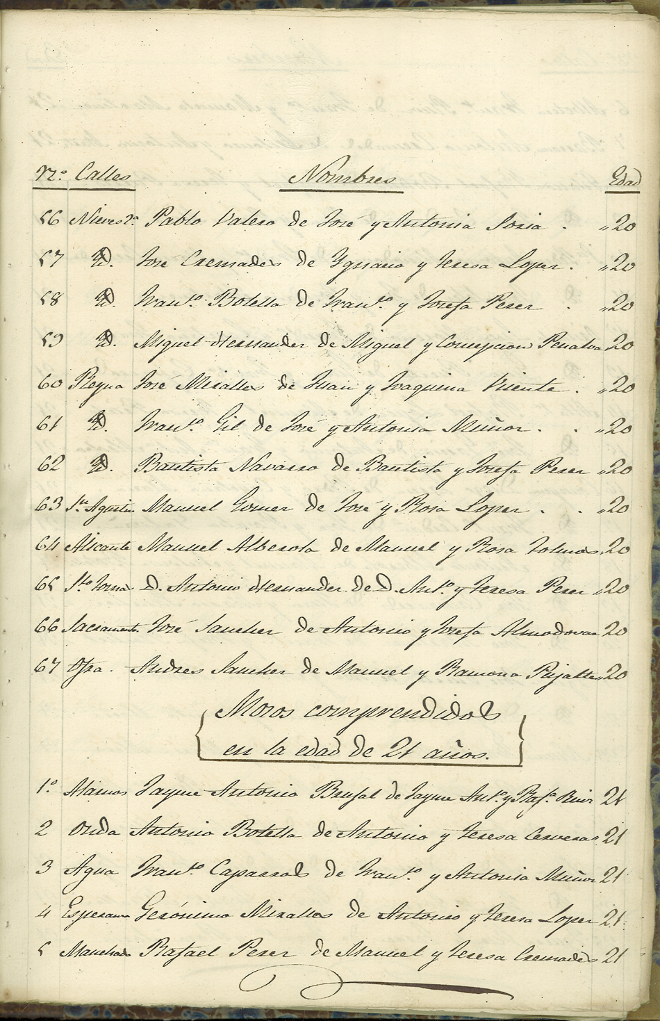 Actas de Alistamiento, 1852.