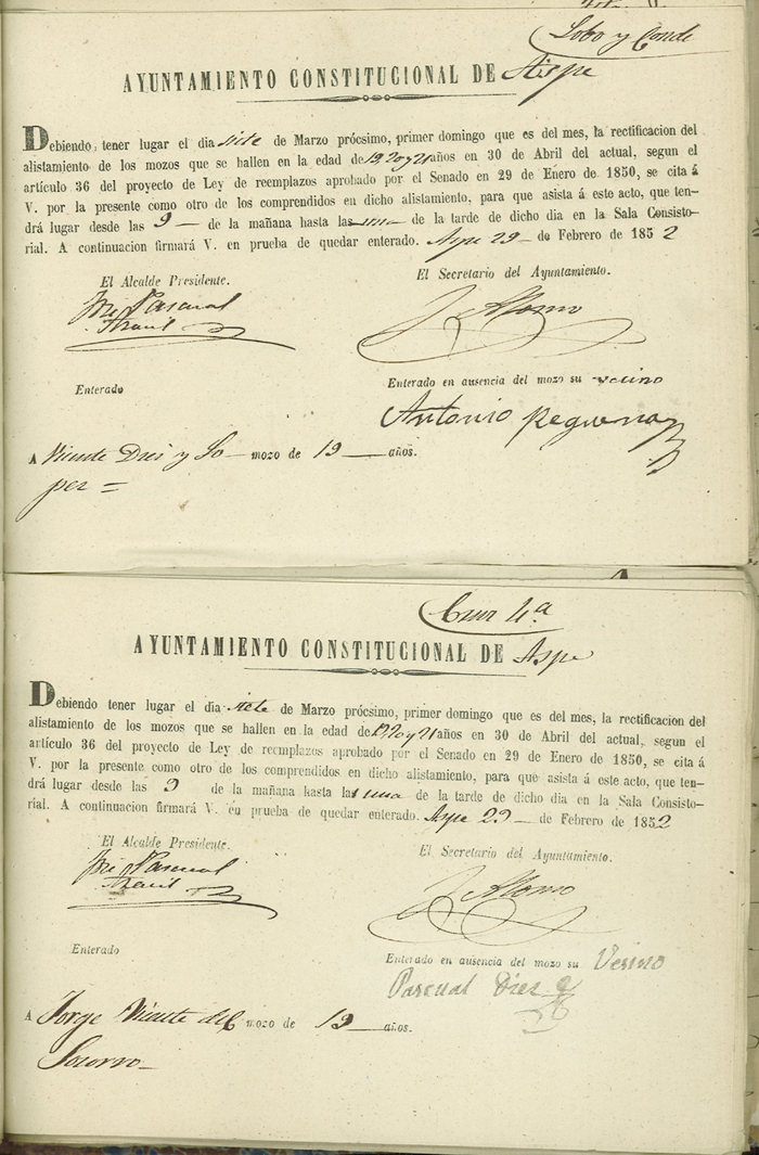 Actas de Alistamiento, 1852.