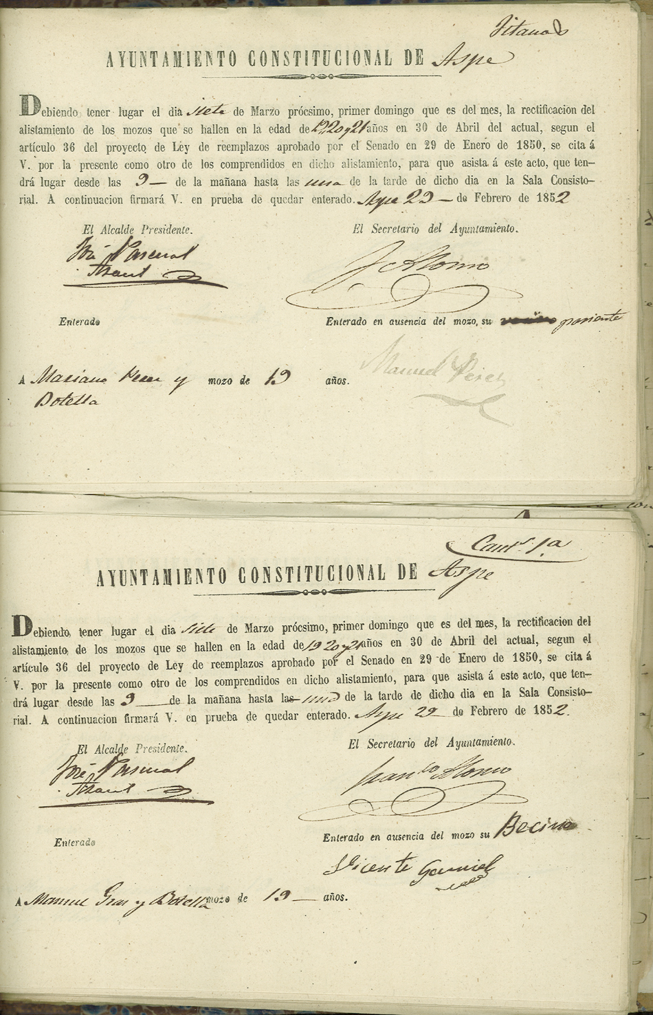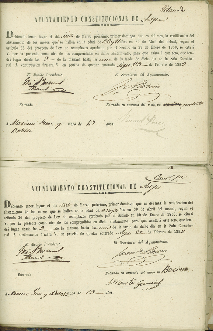 Actas de Alistamiento, 1852.