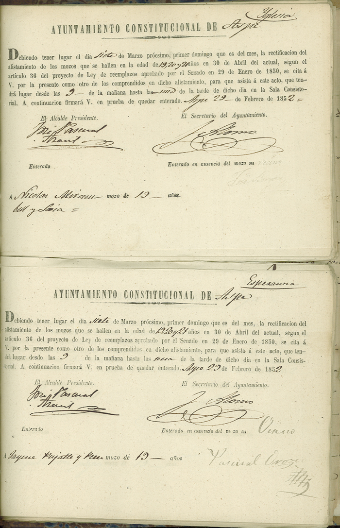 Actas de Alistamiento, 1852.