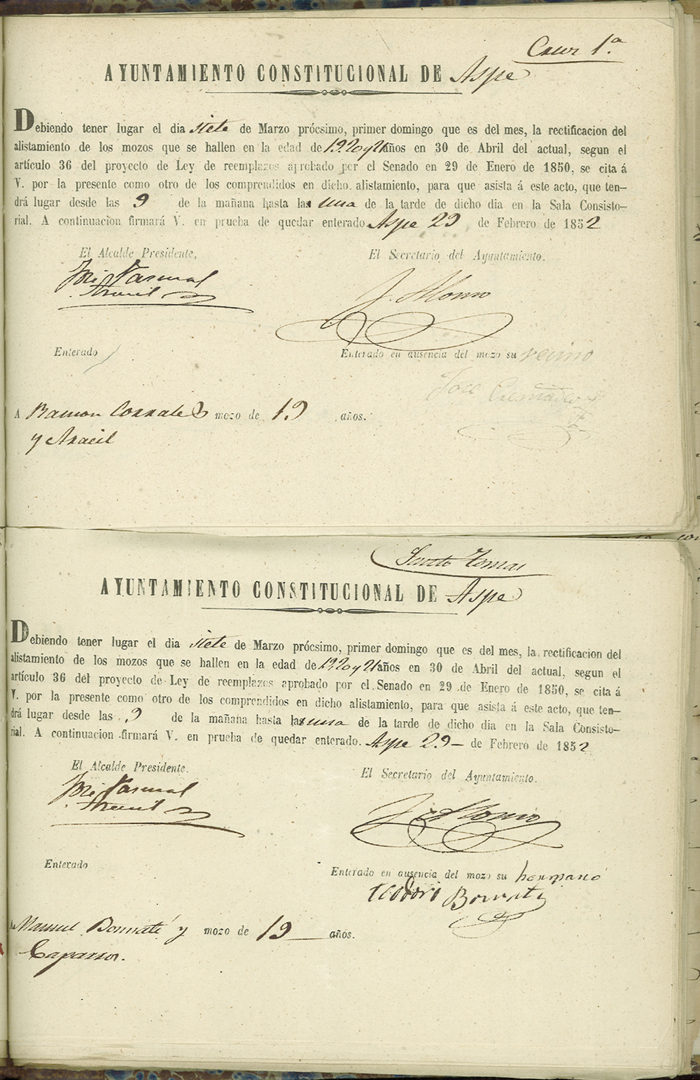 Actas de Alistamiento, 1852.