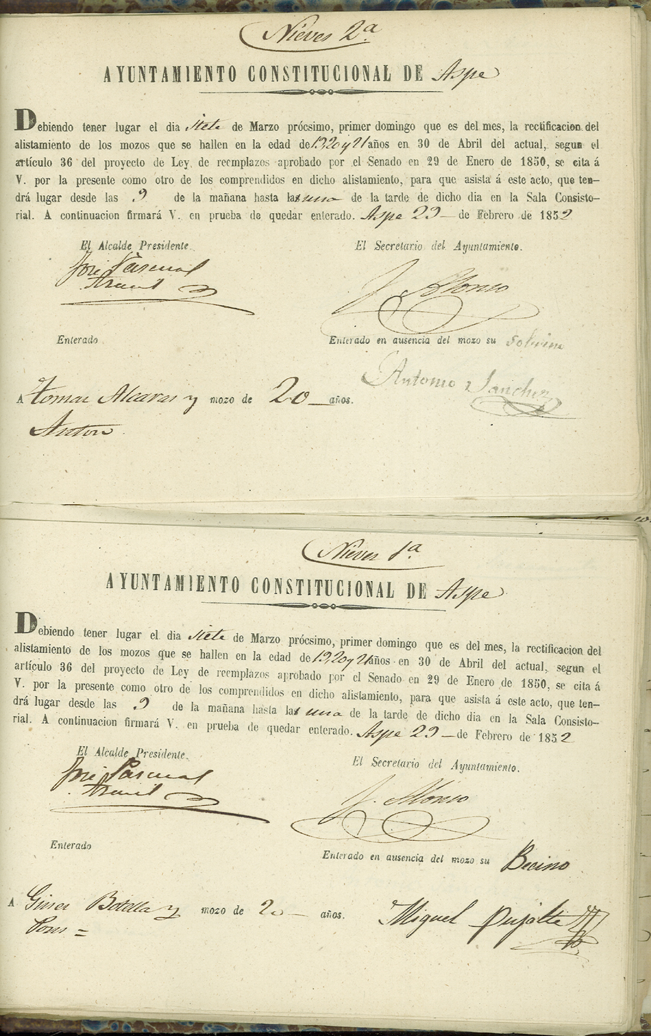 Actas de Alistamiento, 1852.