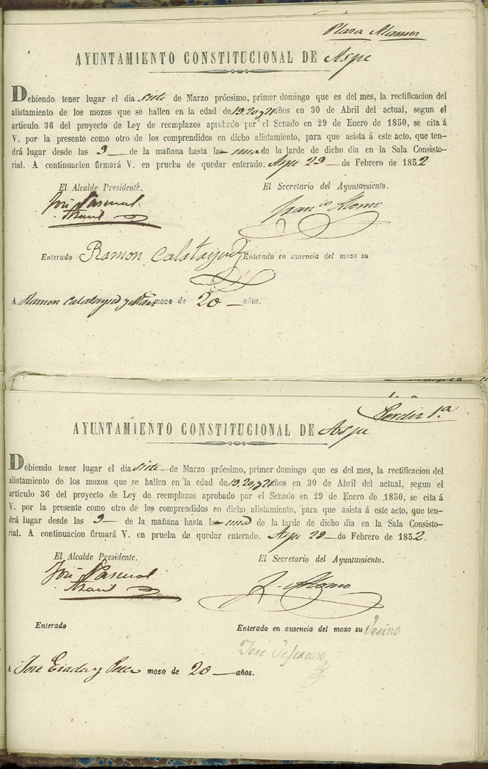 Actas de Alistamiento, 1852.