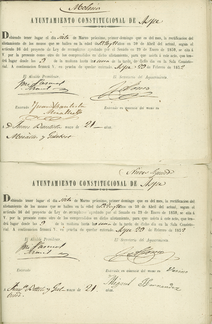 Actas de Alistamiento, 1852.