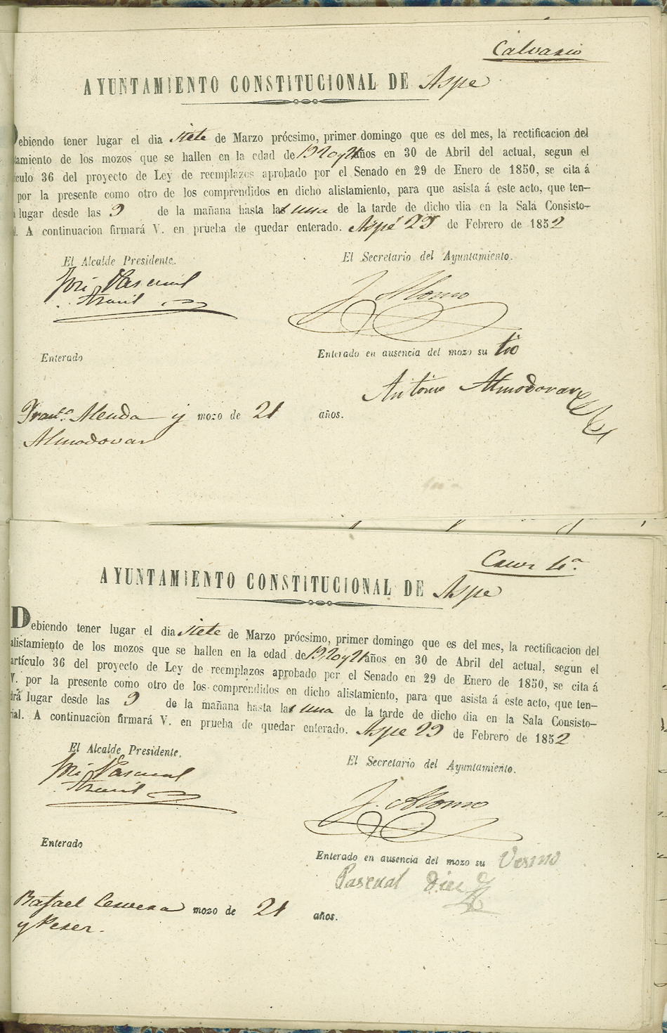 Actas de Alistamiento, 1852.