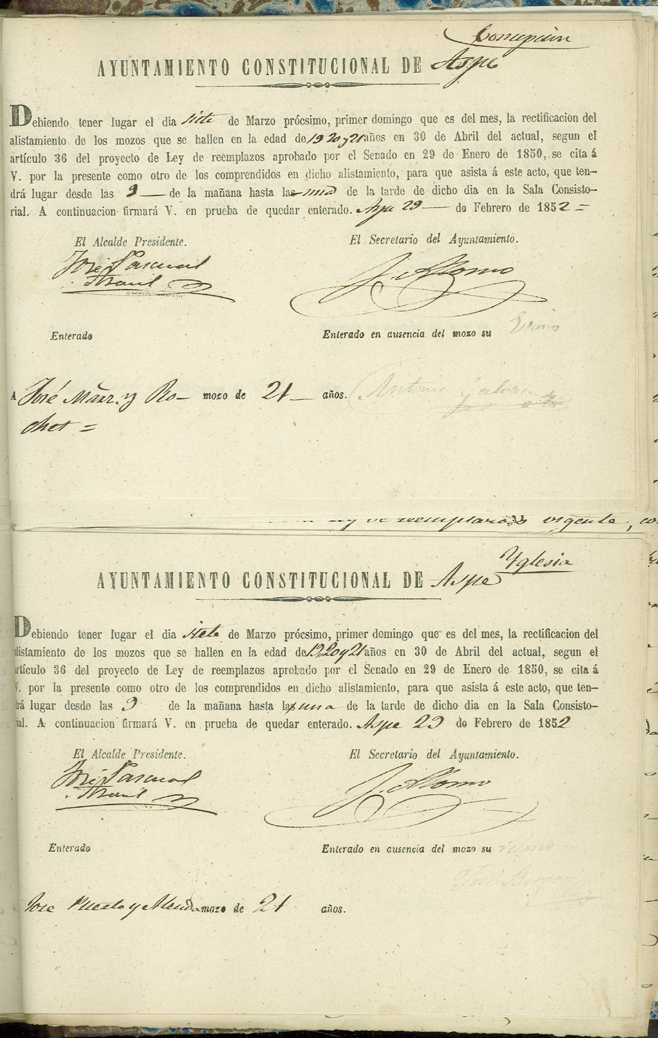Actas de Alistamiento, 1852.