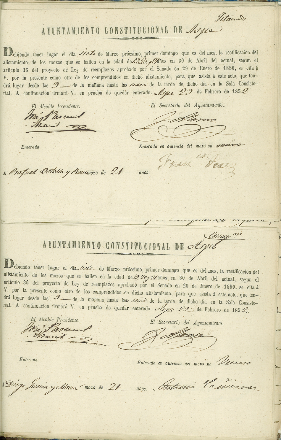 Actas de Alistamiento, 1852.