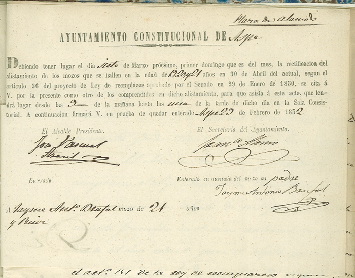 Actas de Alistamiento, 1852.